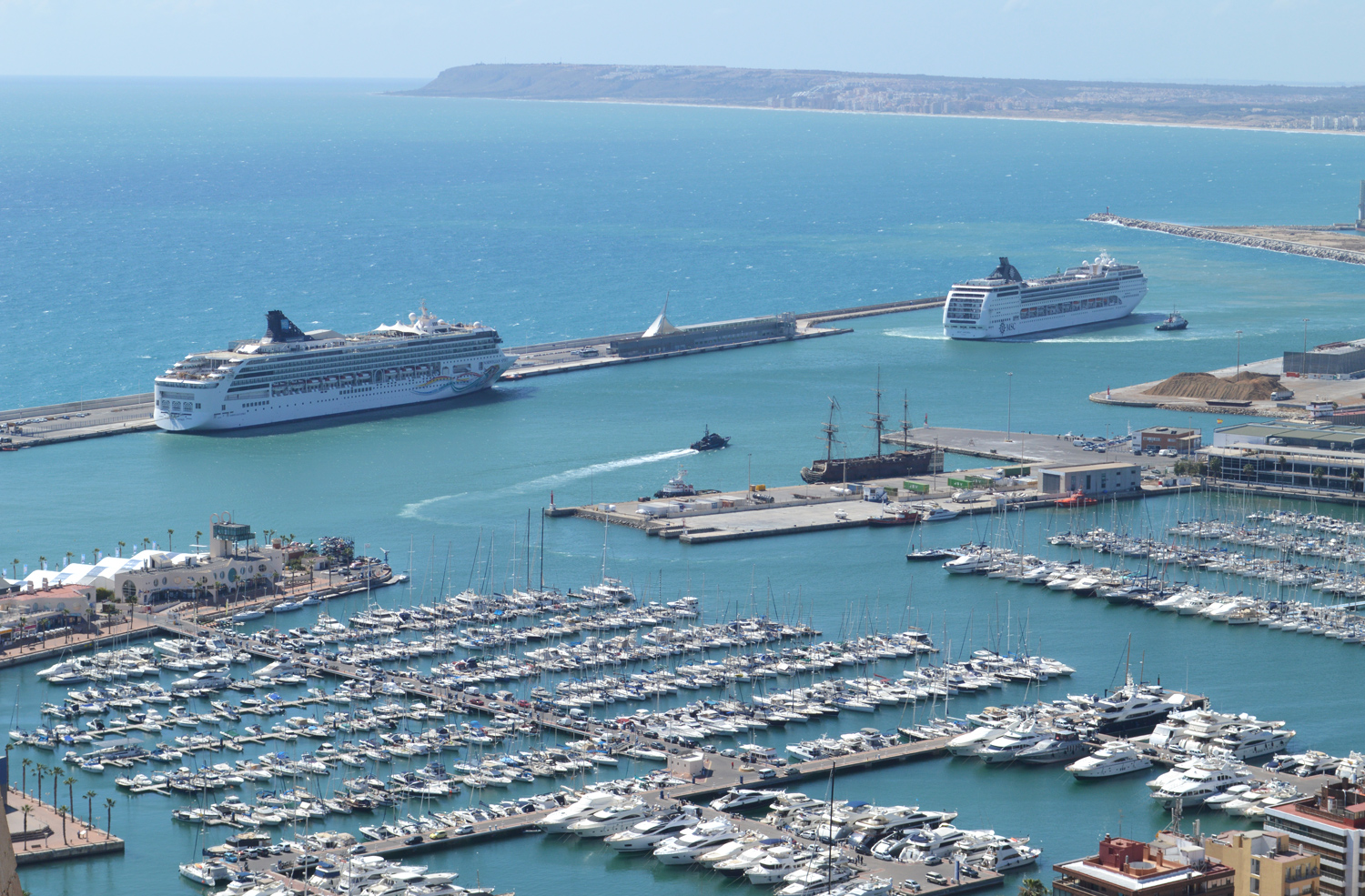 Arriving in Alicante early afternoon we zeroed in on our preferred parking place, along the front past the marina. Only to be thwarted by a changed road layout, This required us finding a way to turn around and go back around for another look. This time we found a turning but that took us off towards San Juan, so another U turn later we found a parking spot just about big enough for a motorhome at the end of the front in a rough unmade up car park.
