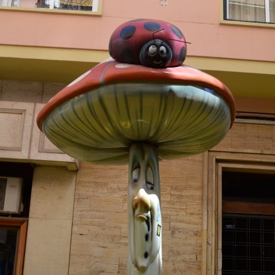 The problem with that being everywhere we liked the look of it was full, suffice to say we covered a lot of ground including Calle San Fransico, which was an amazing sight. Although we had read about it finding it out of the blue was fun, the street has a painted pavement (mostly yellow) and giant colourful mushrooms and toadstools scattered along its length. These are about 10ft high and normally have an equally giant ant or ladybird on top, there are also smaller toadstool houses for children to play in and hopscotch squares painted. The street is great fun and we think more places should do something like it.