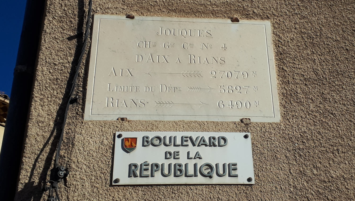 At the top of the town a steep pebble path led us up to the remains of the old 11th century chapel, the Romanesque style Notre Dame de la Roque, dating from 1135, with far reaching views of over the meadow and town rooftops, all the way across to the mountains of the Concors and Ubacs. The chapel is in ruins but is worth the walk nonetheless offering a historical taste of what used to be. Further up the hill we could see the medieval Chateau d’If but it is no longer accessible which was just as well because it looked like a pretty steep climb. With a climate of cool summer evenings Jouques was a place of choice for the Archbishops of Aix en Provence to build their summer residences and the main street Rue de Replublique is lined with houses which used to belong to the bourgeoisie who would flock here to enjoy the cooler environment. There are also the remains of a 30km aqueduct fed by the Traconnade spring which used to supply water to Aix-en-Provence along with several ancient fountains so although a small town there was plenty of interest to see and we were glad to have found it.