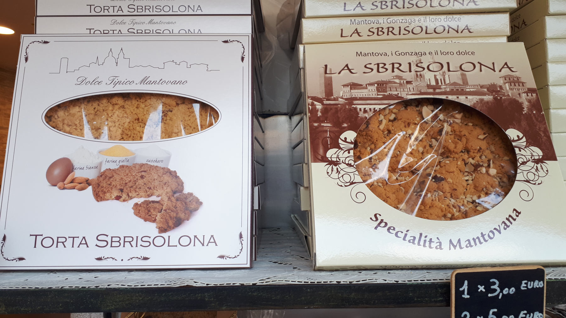 Ever since arriving in Italy we have been looking for fresh pasta, expecting it to be front and centre everywhere we went. Although we had seen the odd tray in the market or shop window we had been struggling to find it but as soon as we walked the streets of Mantova it suddenly appeared in abundance. Trays and trays of ravioli, tortellini, tagliatelle, gnocchi, tortelli – finally we had found it. What we weren’t prepared for though was the cost, with some obviously handmade pasta shapes costing as much as 28 euros a kilo!