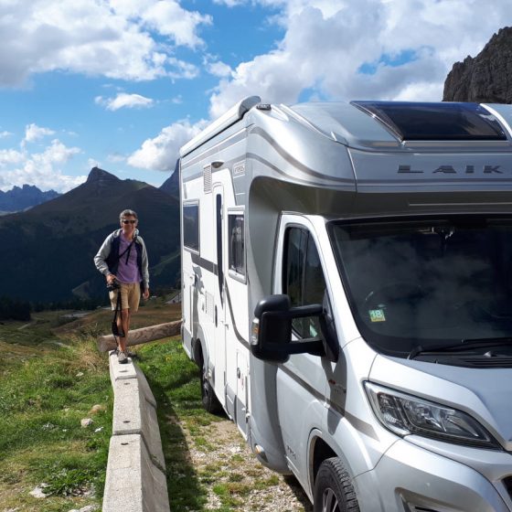 A spectacular parking place for our motorhome in the heart of the Italian Dolomites