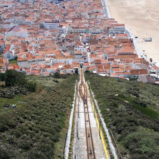 Nazare can quite rightly boast some of the biggest waves in the world and the reason for them is a hidden secret under the sea. A monumental canyon 140 miles long and up to 3 miles deep begins just offshore. As the might of the sea comes over the canyon the strength is intensified and the already immensely powerful waves are magnified. This is no place for beginners and only the very experienced can surf here. We took the 1889 funicular up the hillside to Sitio and walked along to the Fortress, a historic site that was started in 1577 and now includes a lighthouse which can beam light out 15 miles. The views from the top of the town are wonderful, with sandy bays stretching and curving out each side with the main Praia Nazare beach to the South and the Praia do Norte to the North.
